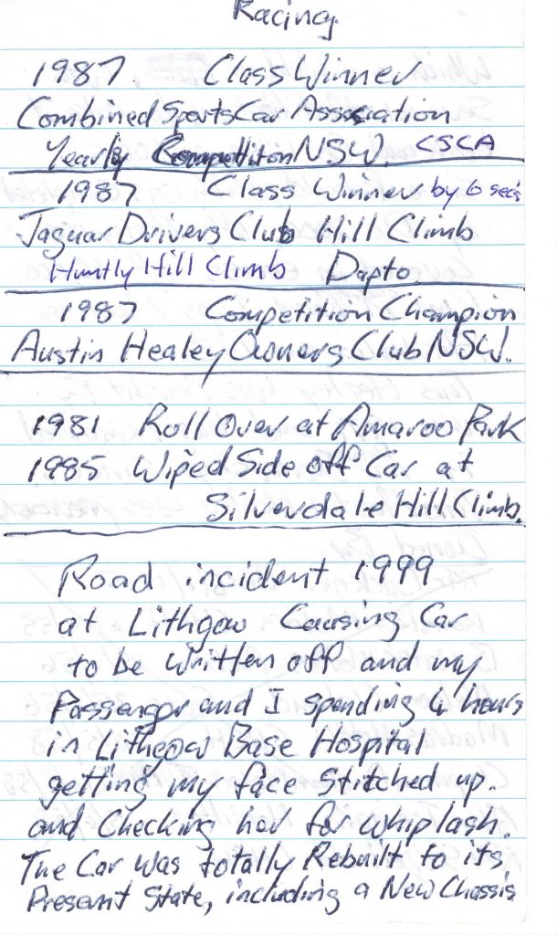 From car meets/rallies to racing. Being crashed into, crashing himself, to eventually the Red Healey being written off.